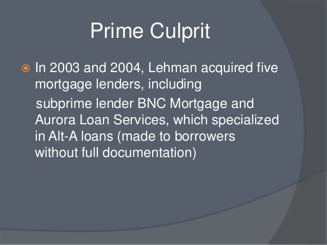 The Bankruptcy of Lehman Brothers: Causes, Effects and Lessons Learnt its subprime – lending unit and elimination of indicated that Lehman Brothers had no idea that the subprime mortgage market could ... Fetch Here