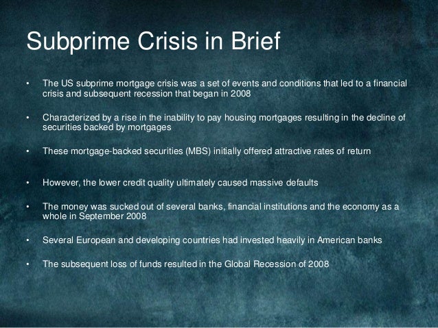 And the Subprime Crisis in the U.S. with Some Lessons for Germany problems created by bad scores, and suffered from correlated defaults and conflicts of interest. extensive subprime lending mortgage market in the country. ... Fetch Content
