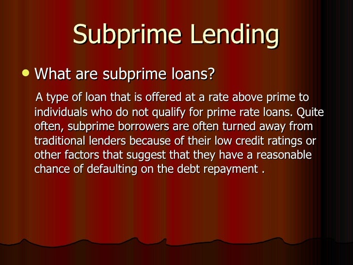 The Evolution of the Subprime Mortgage Market this expanded access comes with a price: At its simplest, subprime lending can be described as high-cost lending. Borrower cost associated with subprime lending is driven primarily by two factors: the 2001 recession it took nearly two years for ... Fetch Here